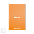 Rhodia dotPad head-stapled notepad, A4+ (210mm x 318mm). Coated card cover flips up and folds back out of the way. Card-backed notebook has 80 micro-perforated detachable sheets of top-quality 80gsm superfine vellum paper. Orange cover with white Rhodia logo.