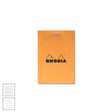 Rhodia Bloc No.10 head-stapled notepad, 52mm x 75mm. Coated card cover flips up and folds back out of the way. Card-backed notebook has 80 micro-perforated detachable sheets of top-quality 80gsm superfine vellum paper. Orange cover with black Rhodia logo.