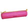 Fuchsia Rhodiarama Round Pencil Case constructed from wonderfully tactile Italian leatherette. Stylishly embossed on one side with the distinctive Rhodia logo. Orange leatherette puller and orange zipper. Ivory jersey material inner lining.