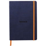 Rhodia Rhodiarama Softcover Notebook. Made from luxurious Italian leatherette. Rounded corners, Rhodia orange inner covers, elastic closure, pen loop and 2 ribbon page markers set of the design off nicely. Inner compartment to ensure that receipts, recipes and other ideas are kept safe.