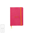 Soft-cover notebook in Raspberry pink with a luxurious Italian leatherette finish. Rounded corners, Rhodia orange inner covers, elastic closure and page marker ribbon set the design off nicely.