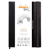 Rhodia Touch Bristol Book in A4. Suitable for all kinds of ink including fountain pen ink, marker pens, brush pens and dip pen calligraphy ink. The heavyweight 205gsm paper is wonderfully smooth, perfect for pen and ink washes and all kinds of ink. 32 sheets encased in a black softcover with elastic closure and page ribbon.