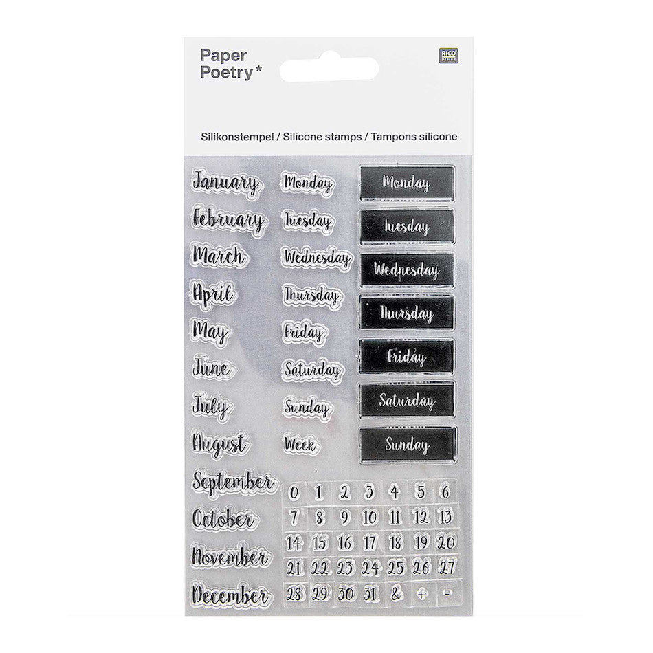 Clear stamps with days of the week, months of the year and numbers on to help with planner design and bullet journalling. Silicone stamp is easy of clean.