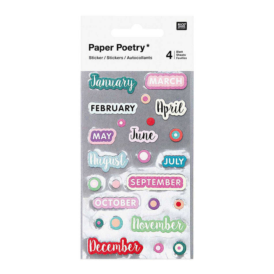 4 sheets of 25 stickers with the months of the year in various colours and multicoloured dots. Perfect for organising your bullet journal or diary.