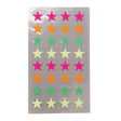 Neon star-shaped stickers. Contains 4 sheets of 32 stickers or 200 stars in fuchsia, orange, green and yellow. Use with different size stars for a great effect.
