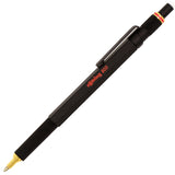 rotring 800 ballpoint pen. Heavy metal hexagonal barrel with cylindrical knurled grip. The 800 features a retractable tip - twist the knurled control above the clip to extend or retract the whole writing tip, making the 800 exceptionally pocket-safe and less susceptible to accidental sleeve damage. 4mm fixed sleeve. Matt black finish. Smooth writing, long lasting and precise refillable pen.