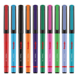 Set of 10 rotring fineliners in assorted colours. 0.4mm tip. Secure cap. Barrel denotes ink colour.