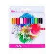 Pack of 10 Ecoline Brushpens in Bright colours, including one each of 205 Lemon Yellow, 236 Light Orange, 334 Scarlet, 390 Pastel Rose, 337 Magenta, 548 Blue Violet, 578 Sky Blue, 600 Green, 440 Sepia Dark and 700 Black.