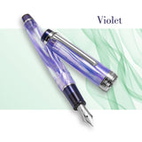 Designed to resemble a bridal veil, the Veilio fountain pen from Sailor features a transparent acrylic resin barrel with a marbled pattern flowing throughout. Due to how these pens are made, no two pens look exactly the same!