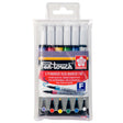 Set of 6 assorted Sakura Pen-Touch Fine Paint Markers containing one each of purple, yellow, white, red, green and blue. Fine bullet nib gives 1.0mm line.