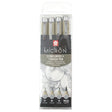 Set of 4 light cool grey Pigma Micron pens, in 01, 05, 10 and brush tips.
