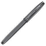 Sheaffer 100 rollerball pen with polished gunmetal grey barrel and polished PVD trim. Slotted pocket clip featuring the iconic Sheaffer White Dot.