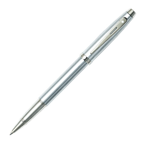 Sheaffer 100 roller pen in brushed chrome with nickel plate trim. Metal clip with Sheaffer White Dot® symbol of excellence.