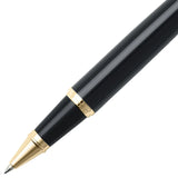 Sheaffer 300 Rollerball Pen with gold trim over a glossy black barrel. Sprung metal clip with Sheaffer White Dot® symbol of excellence. A modern design using classic finishes.