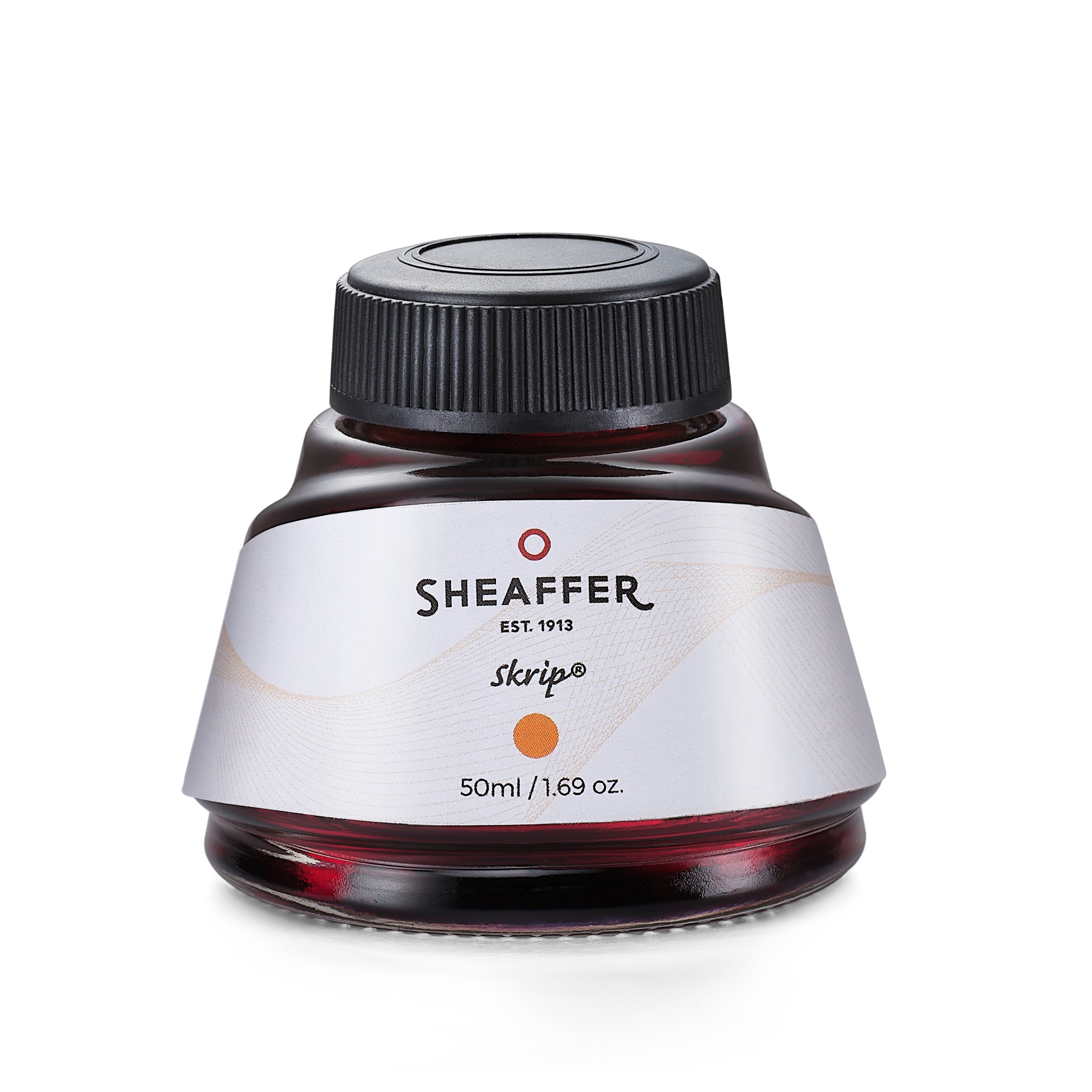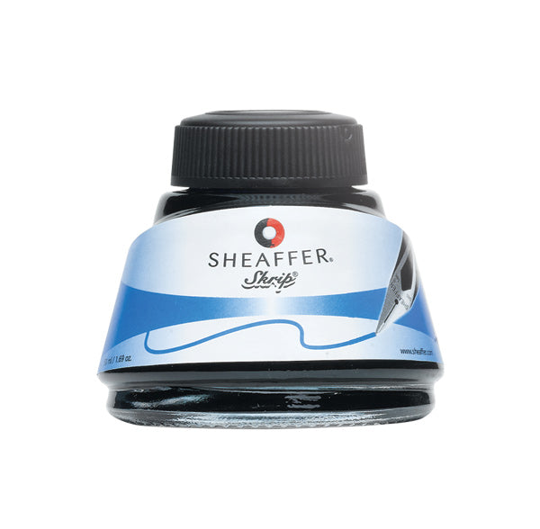 Sheaffer Skrip ink for fountain pens. 50ml bottle. Recommended for all Sheaffer fountain pens, and suitable for all makes of fountain pen. Formulated for long write-out and smooth flow.