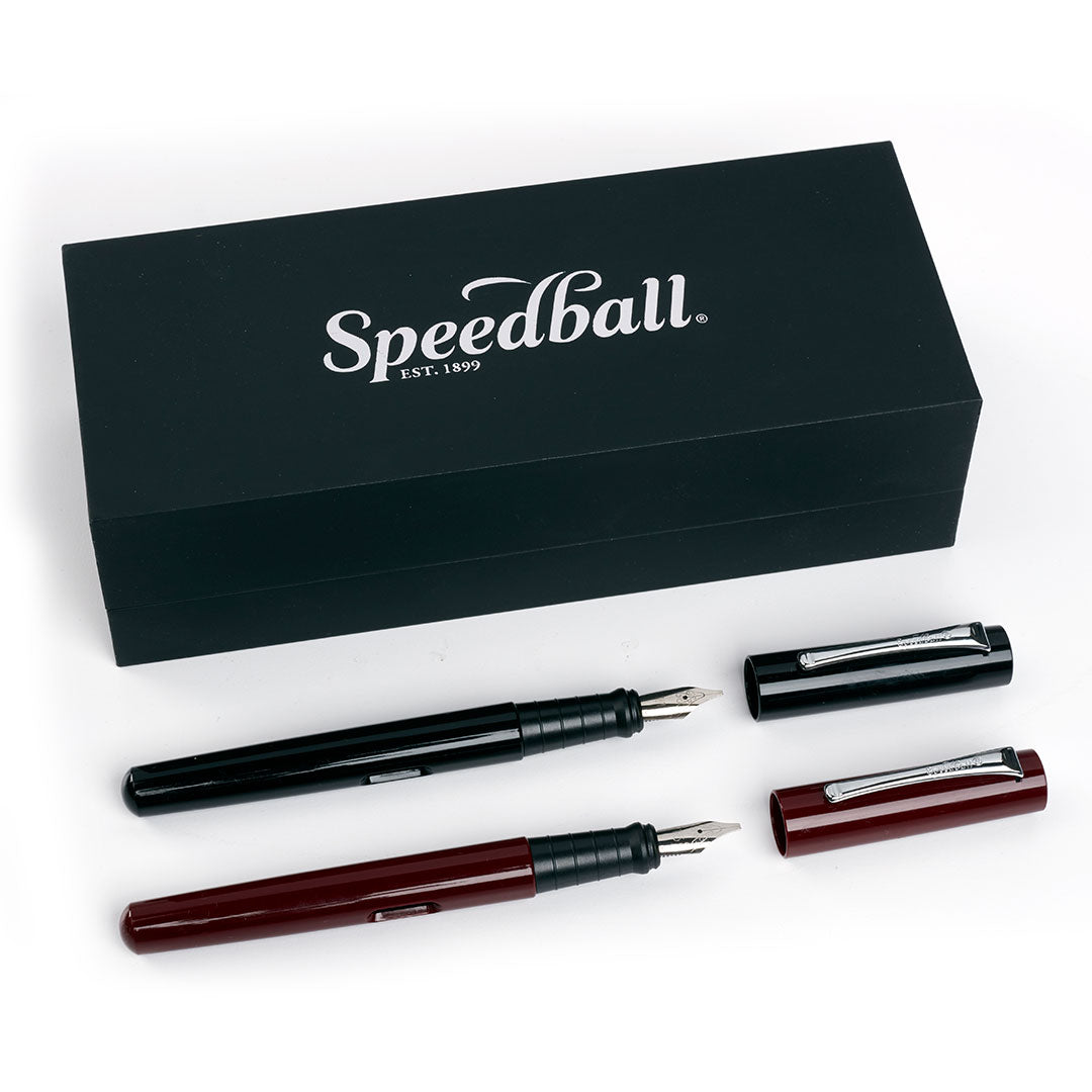 - 2x lightweight, comfortable Calligraphy Fountain Pens in black and burgundy