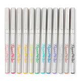 12 assorted colours - red, pink, orange, yellow, light green, dark green, turquoise, royal blue, purple, brown, grey and black. Free-flowing, dye-based, acid free ink.