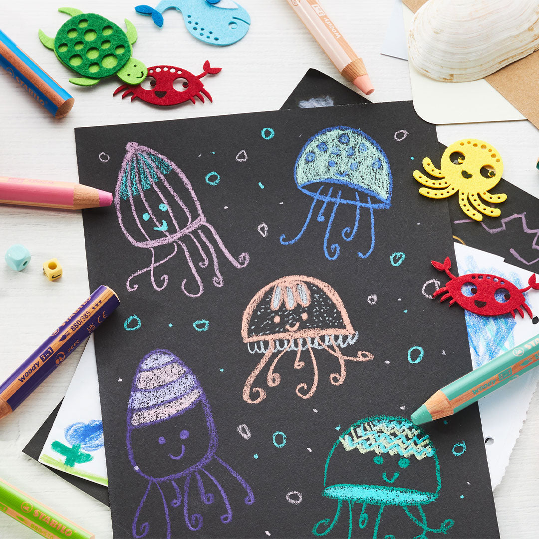 Pack of 6 STABILO Woody 3-in-1 Pencils. A cross between a pencil and a wax crayon, the thick 10mm lead produces dense, bright, non-toxic colour and is great fun to use for adults and children alike.
