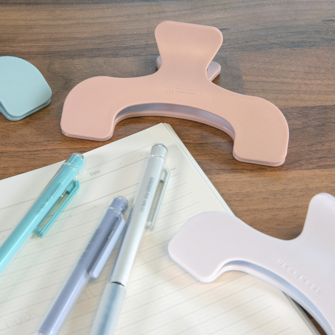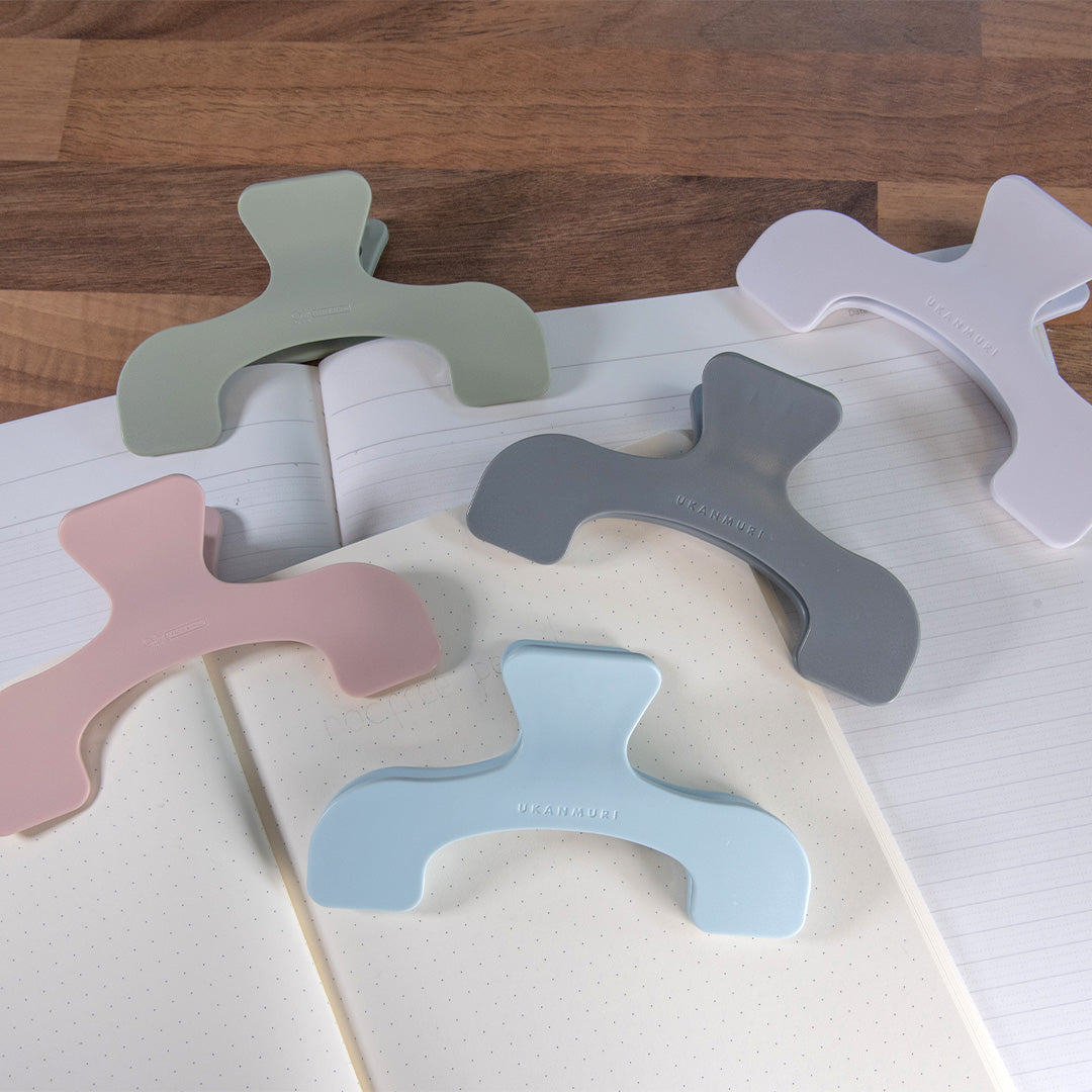 Ukanmuriclip is a simple page holder, to hold your notebook open while you work, or hold a book open on your desk, making it easier to refer to while you work. Useful for taking notes, keeping your journal or diary open for quick reference, or keeping the recipe book ready to refer to while your hands are covered in flour and egg. Nobody wants an eggy book.