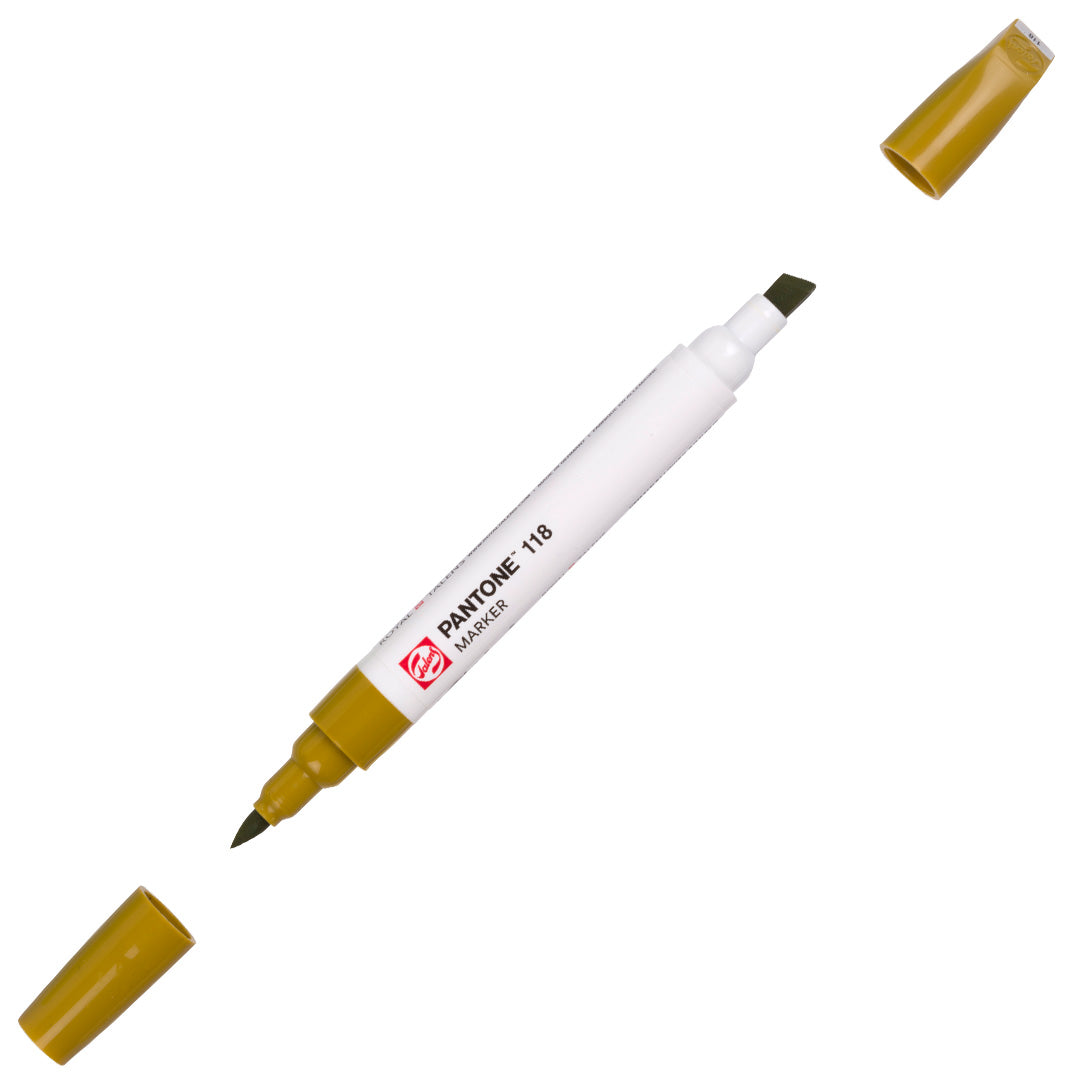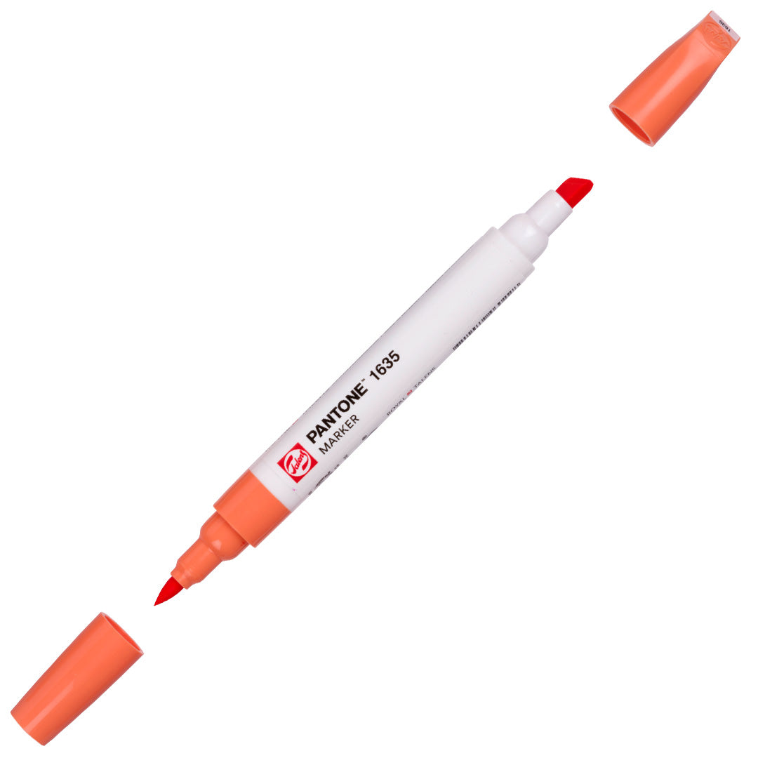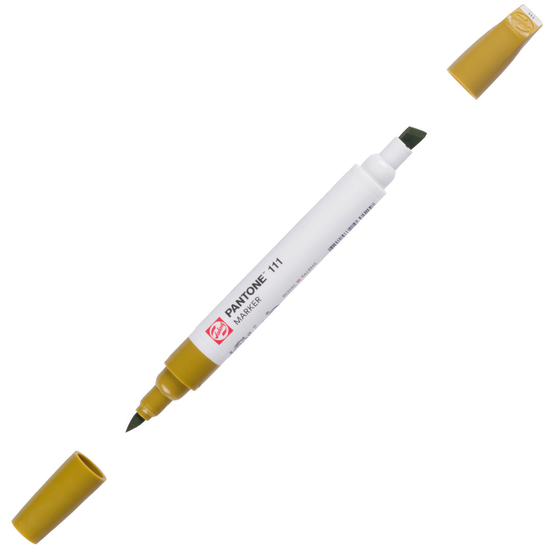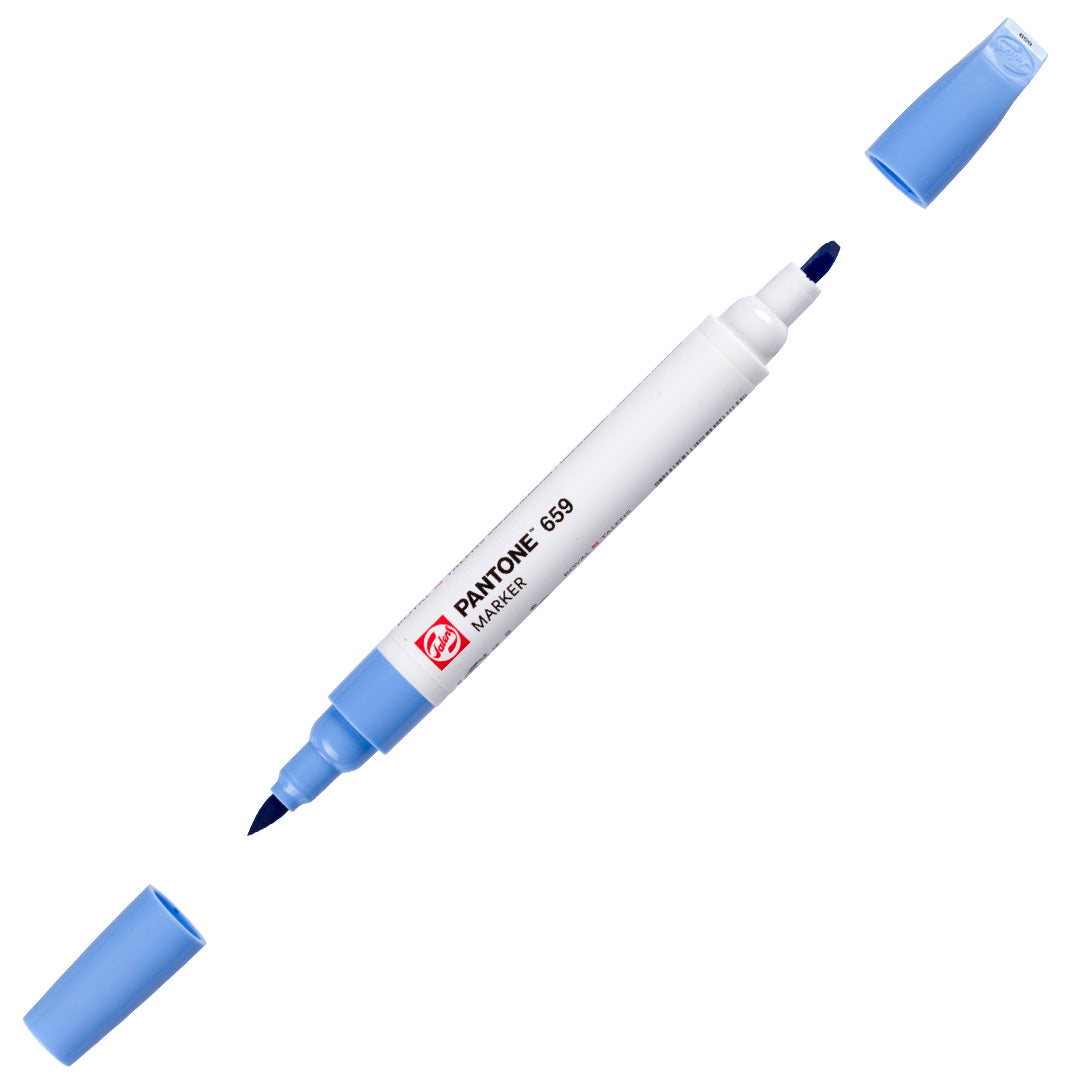 The Pantone double ended marker pen brings their Matching System to marker form (or at least part of it) and comes with brush end on one side and an angled chisel nib on the other, offering a versatile, lightfast water-based marker pen with true Pantone colour. The colour of the cap also matches the ink colour perfectly.