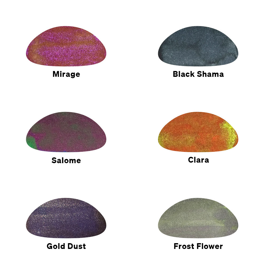 - Shimmer Ink - Autumn Rain Grey, Copper Patina, Dragon Fruit, Starry Night Blue, Polar Lights, Butterfly Dream, Moon River, Nenita and Tuslob Buwa.