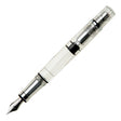 TWSBI Diamond 580AL Fountain Pen. Transparent barrel reveals the aluminium filling mechanism, a built-in piston-filler with a very smooth action. Chromed metal trim and pocket clip. TWSBI logo nicely finishes the top of the pen's cap. Rubber o-ring on cap thread ensures an airtight seal to prevent ink drying out in the pen, whilst also ensuring that the cap is firmly attached to the pen when not in use.