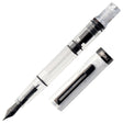 Clear 'demonstrator' barrel reveals the filling mechanism, a built-in piston-filler with a very smooth action. Features Onyx trim and a marbled white cap and piston filling mechanism. TWSBI logo nicely finishes the top of the pen's cap. Rubber o-ring on cap thread ensures an airtight seal to prevent ink drying out in the pen, whilst also ensuring that the cap is firmly attached to the pen when not in use.