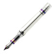 TWSBI Vac 700R Fountain Pen. Clear-barrelled vacuum-filling fountain pen. Beautiful iridescent iris coloured grip section, trim and pocket clip. TWSBI logo finishes the top of the cap nicely.