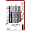 The Creative Strokes set showcases the different colours that make up the Uni PIN range: black, light grey, dark grey and sepia. Contains a brush tip pen and a 0.1 pen in all 4 colours. This range of tones are perfect for so many projects, including: graphic design, drawing, bullet journaling and brush lettering. Supplied in fully biodegradable packaging.
