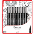The Expert Selection set contains 12 of the Uni PIN essential black nib sizes ranging from 0.05mm to 0.8mm. Supplied in fully biodegradable packaging.