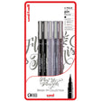 The Flow and Flourish set features the different colours that make up the Uni PIN range: black, light grey, dark grey and sepia. Contains 5 pens in different colours: brush tip in black, light grey, dark grey and sepia and a 1.0mm black pen. These artistic tones are ideal for lots of projects. Supplied in fully biodegradable packaging.