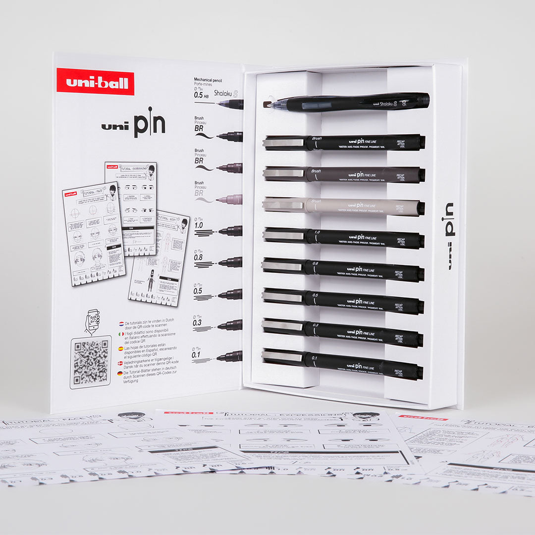 The highly economical Uni Pin drawing pen features Uni-s Super Ink - waterproof, fadeproof and tamper-resistant pigment ink. Ideal for all types of art and design, including sketching and technical drawing, the steel-supported polyacetal nib is available in a range of line widths.