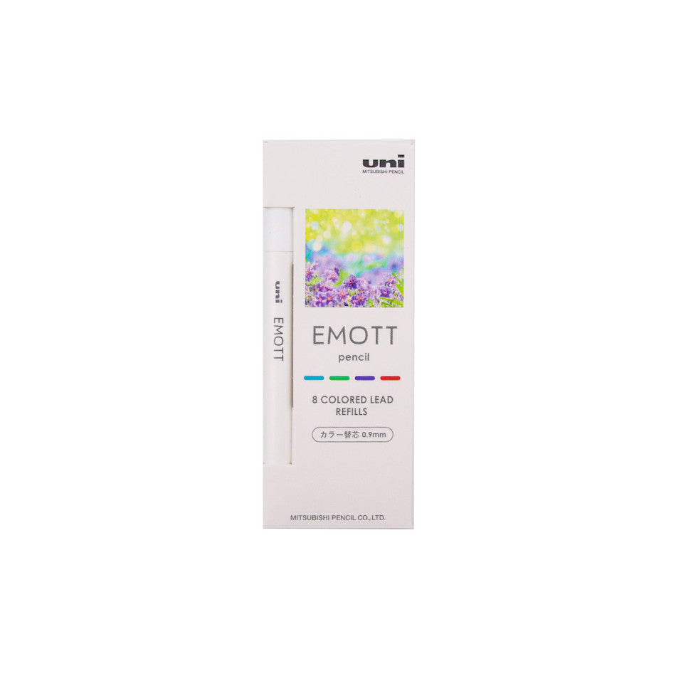 Replacement pack of 8 leads for the Uni Emott 0.9mm 'Refresh' set of mechanical pencils..