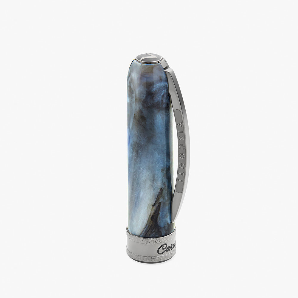 Caronte features deep grey-blue resins, inspired by the dark and mystical waters of the underworld.
