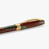 Visconti Van Gogh 'Flowering Plum Orchard' ballpoint pen in natural vegetal resin. The barrel design is a beautiful combination of reds and green to represent some of the colours in his famous painting.