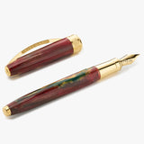 Visconti Van Gogh 'Oiran' fountain pen in natural vegetal resin. The barrel design is a beautiful combination of reds and green to represent some of the colours in his famous painting.