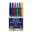Set of 6 Retractable Permanent Markers in assorted colours. The odourless, non-toxic ink is quick-drying and permanent on most surfaces including plastic, paper and metal.