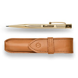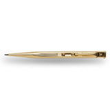 Traditional propelling pencil with hand-hammered barley pattern. Square body and ball-ended clip. This pen is an update to an old model, 'The Deco 34', which used to be made in 1930. When Lt Leslie March was shot in 1942, his Deco 34 pencil took the bullet, saving his life. This 'Lucky' limited edition remembers that original pencil. Gold Vermeil has a gold coating over the Sterling Silver body.