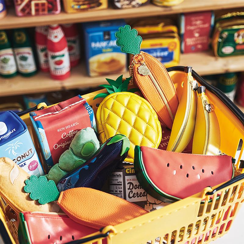 Yup! is a fun Japanese company making pencil cases and pouches with designs that look like foods and food packaging. From cabbage to cake, mayo to macaroni, pizza to pineapple, and sake to spaghetti, carry your stuff more deliciously!